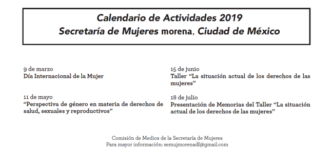 Agenda de la Secretaría de Mujeres